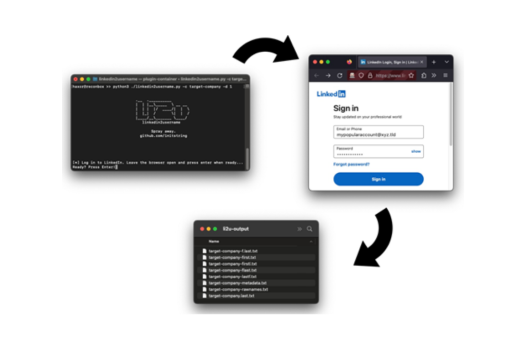 Une liste de noms et d’adresses email peut être récupérée lors de cette partie avec l’utilisation d’outils comme linkedin2username afin de faciliter le travail des attaquants.
