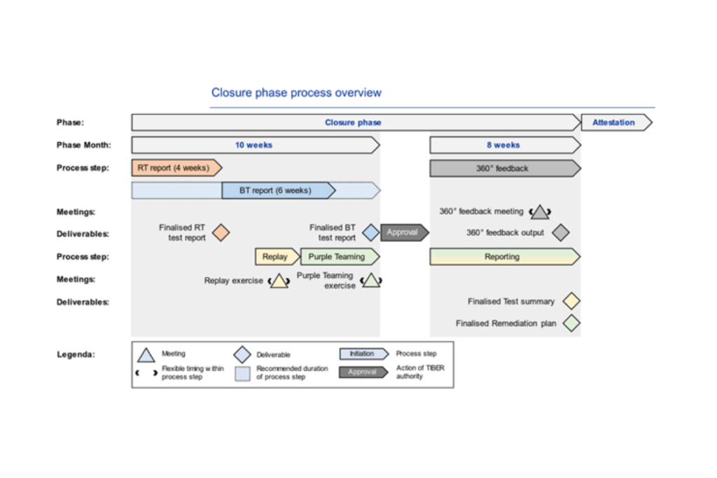 Une fois ces rapports terminés, les exercices de rejeu et de Purple Teaming commencent (on peut retrouver l’utilisation d’outils comme MITRE Caldera ou Atomic Red Team lors de ces « drills »). Ils sont suivis par les rapports de résumé des tests et de remédiations générés par l’équipe de contrôle (CT) qui vont entrainer le processus de feedbacks & d’amélioration continue de la résilience cyber.